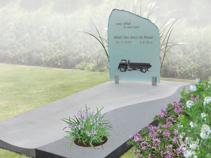 Sierlijke grafzerk met ruwe glazen letterplaat